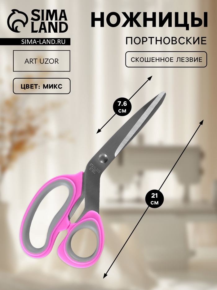 Ножницы портновские, скошенное лезвие, 8", 21 см, МИКС