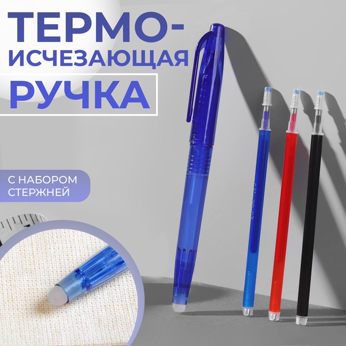 Ручка для ткани термоисчезающая, с набором стержней, белая, розовая, чёрная, синяя