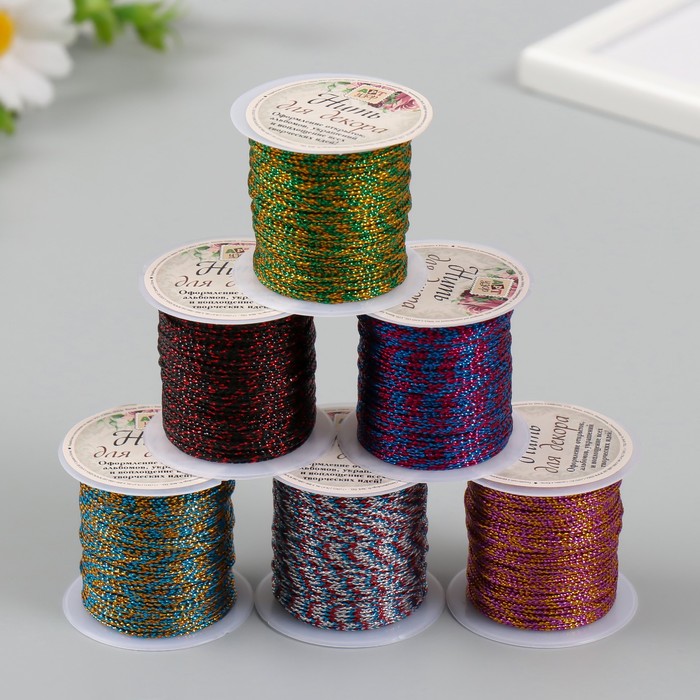 Нить декоративная для творчества «Люрекс», намотка 15 м, МИКС