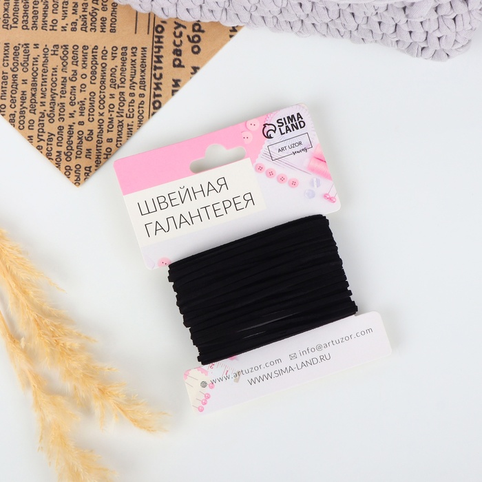 Нить для плетения, замшевая, d=2.5 мм, 5±0.1 м, чёрная