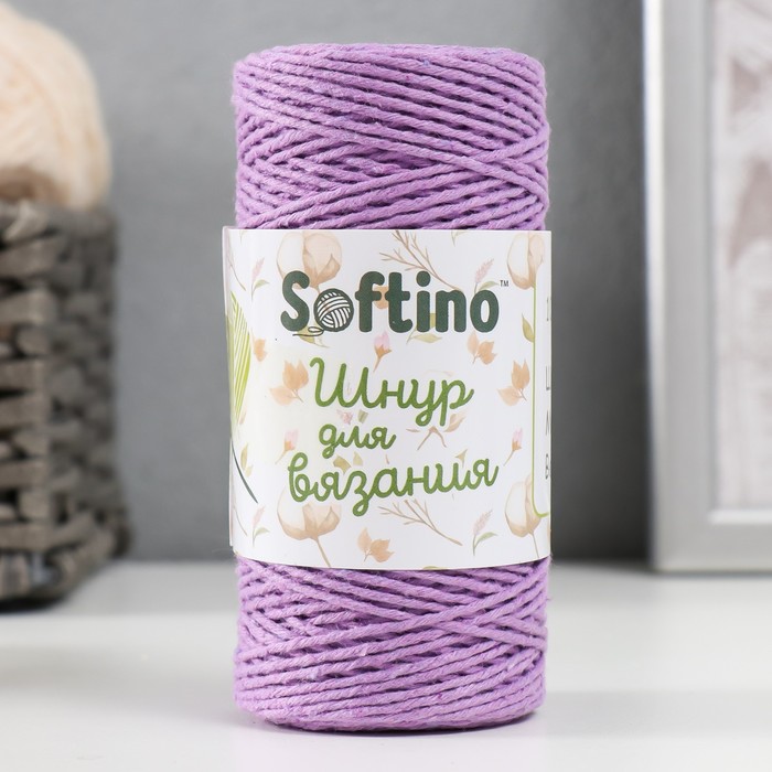 Шнур для вязания 100% хлопок, ш. 1 мм, 100 м, 80 г «Сиреневый», 10×4.2×4.2 см