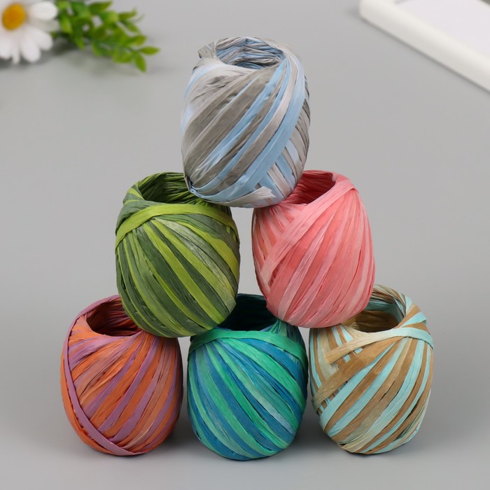 Тесьма декоративная бумага «Рафия меланж», намотка 20 м, МИКС