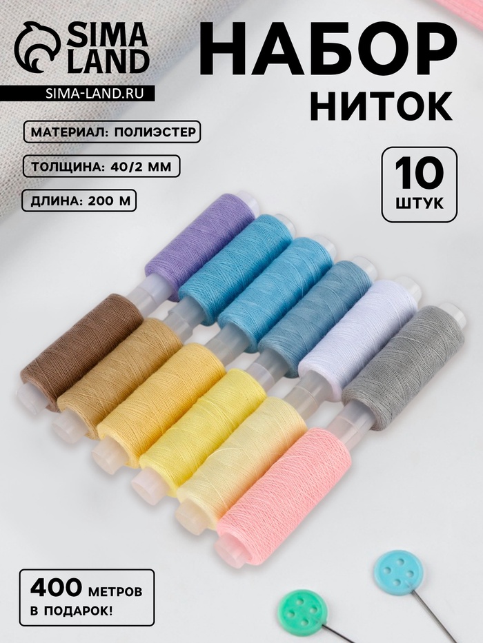 Набор ниток «Весеннее попурри», 40/2, 200 м, 10 шт., разноцветный