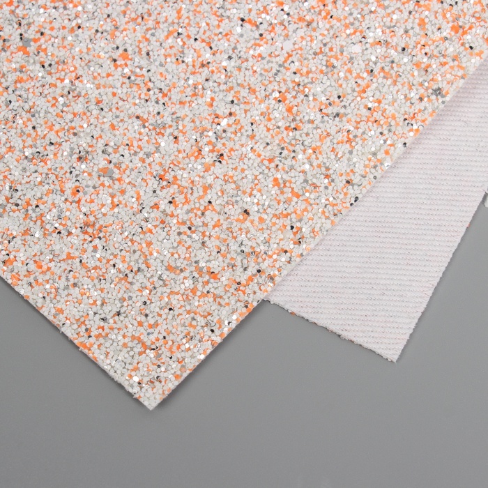 Лист для творчества искусственная кожа «Блёстки», бело-оранжевый лист 33×20 см, толщина 1.6 мм