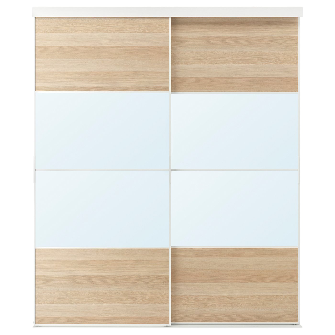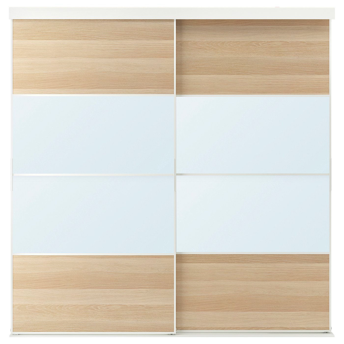 Комбинация с раздвижными дверями, белый/белый окрашенный под дуб с зеркальным стеклом, 202x205 см