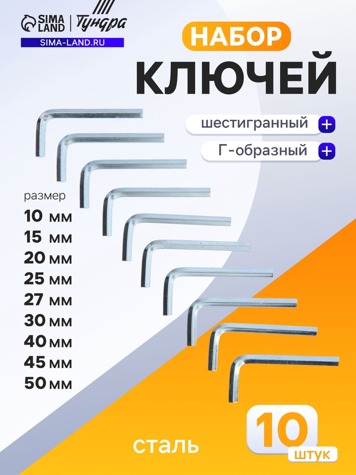 Ключ мебельный ТУНДРА, шестигранный Г-образный, сталь 45, 4 мм, 10 шт.