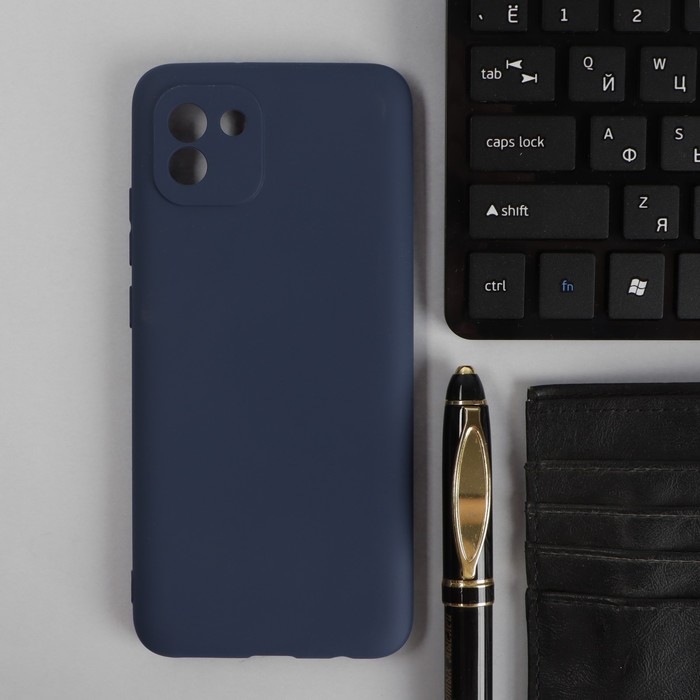 Чехол PERO, для телефона Samsung A03, силиконовый, синий