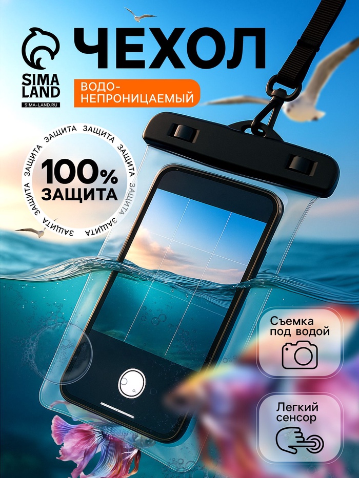 Водонепроницаемый чехол для телефона, размер 20×11 см, чёрный