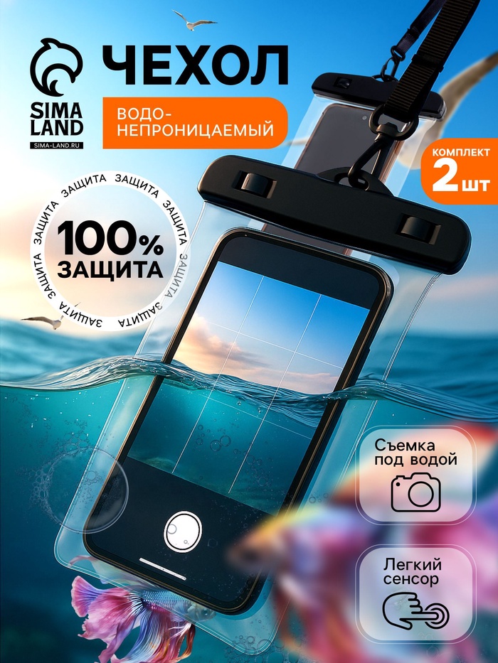 Набор водонепроницаемых чехлов для телефона, 2 штуки, размер 20×11 см, чёрные