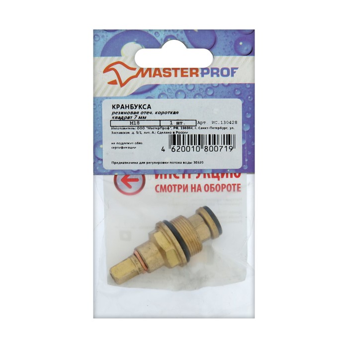 Кран-букса MasterProf ИС.130428, М18, 7 мм, квадрат, резина, для отеч. смесителей, короткая