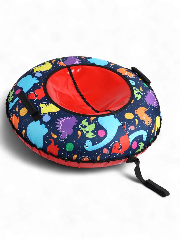 Тюбинг – ватрушка «Динозаврики», диаметр чехла 110 см, красная, снияя, Winter Star