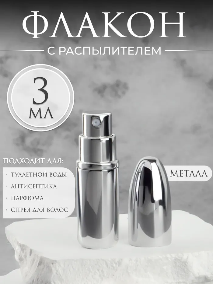 Флакон для парфюма «Пуля», с распылителем, 3 мл, серебристый