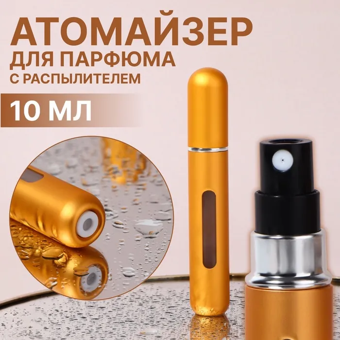 Атомайзер для парфюма, с распылителем, 10 мл, цвет золотистый