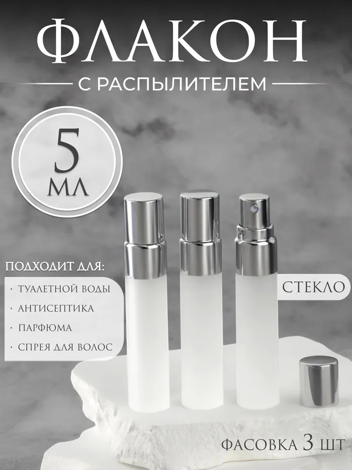 Флакон для парфюма, с распылителем, стеклянный, 5 мл, серый