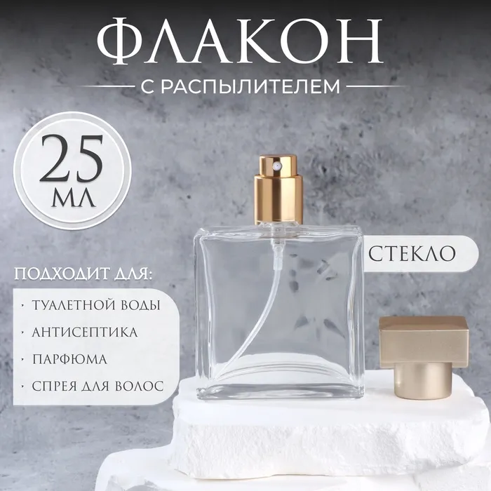 Флакон для парфюма, с распылителем, стеклянный, 25 мл, прозрачный, бронзовый