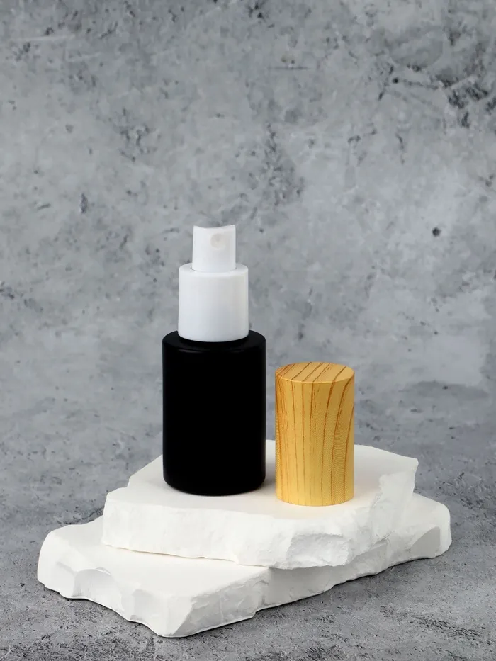 Флакон стеклянный для парфюма, с распылителем, 30 мл, чёрный/бежевый