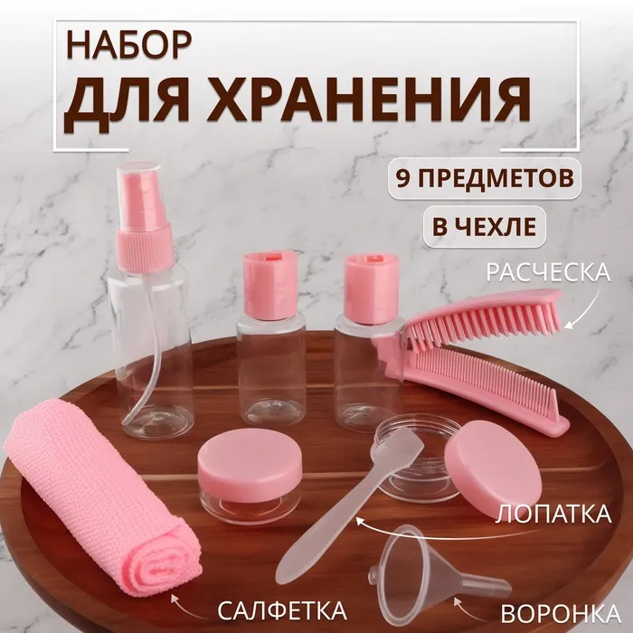Набор для хранения, в футляре, 9 предметов, прозрачный, розовый