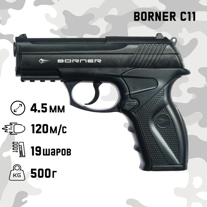 Пистолет пневматический "BORNER C11" кал. 4.5 мм, 3 Дж, корп. пластик, до 120 м/с