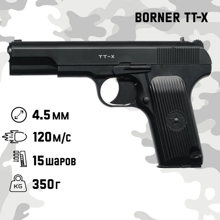Пистолет пневматический "BORNER TT-X" кал. 4.5 мм, 3 Дж, корп. пластик, до 120 м/с
