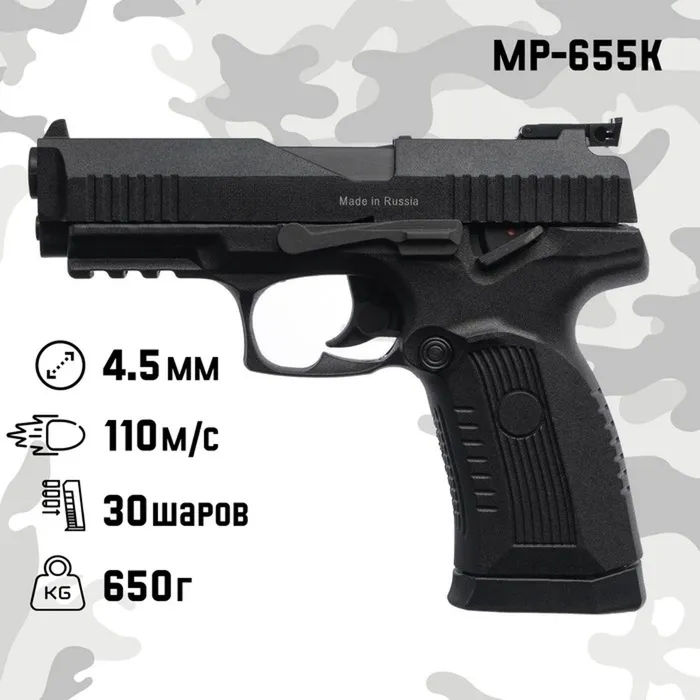 Пистолет пневматический "МР-655К" кал. 4.5 мм, 3 Дж, корп. металл, до 110 м/с