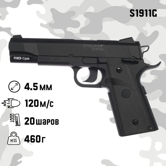 Пистолет пневматический Stalker "S1911G" кал. 4.5 мм, 3 Дж, корп. пластик, до 120 м/с