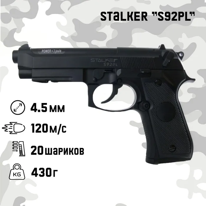 Пистолет пневматический Stalker "S92PL" кал. 4.5 мм, 3 Дж, корп. пластик, до 120 м/с