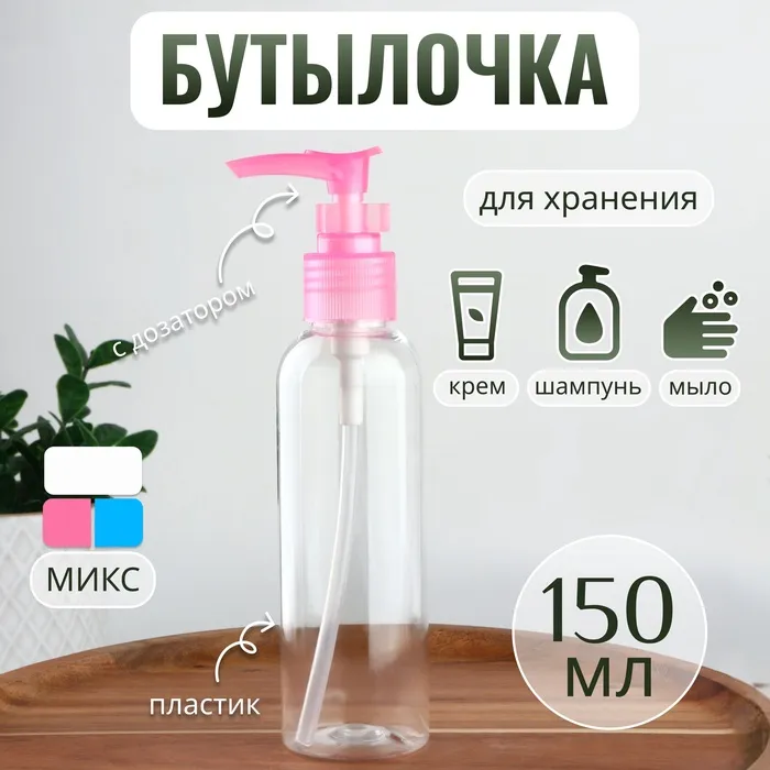 Бутылочка для хранения, с дозатором, 150 мл, цвет МИКС/прозрачный
