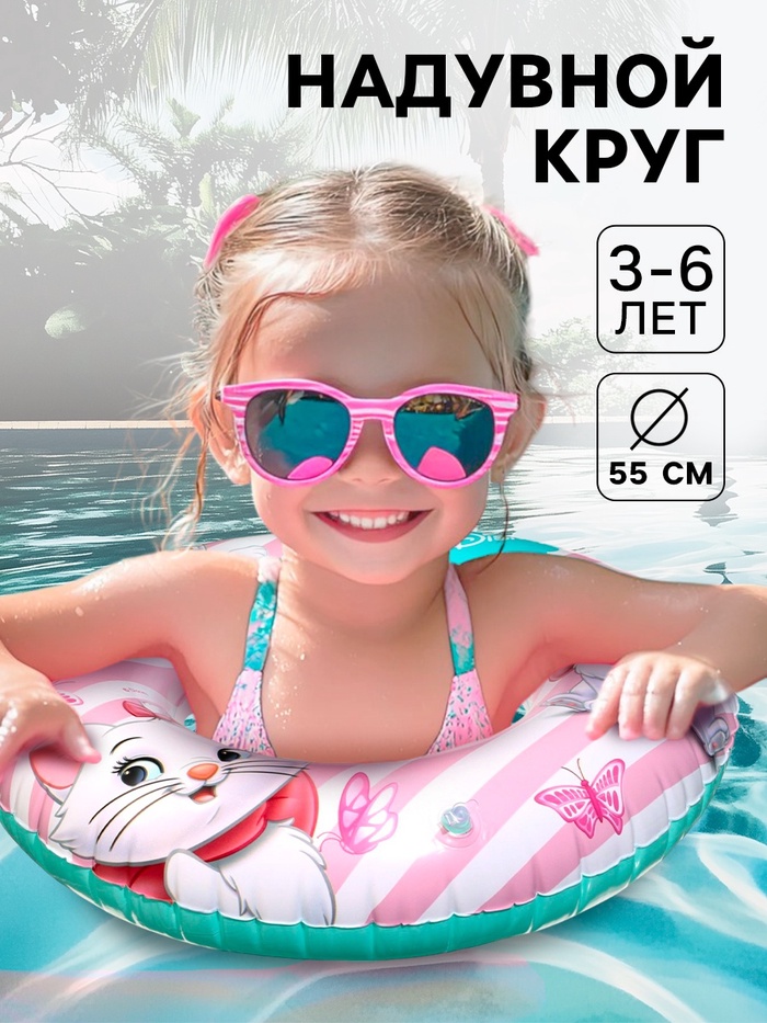 Круг для плавания надувной «Кошечка Мари» Ø 55 см, детский, розовый