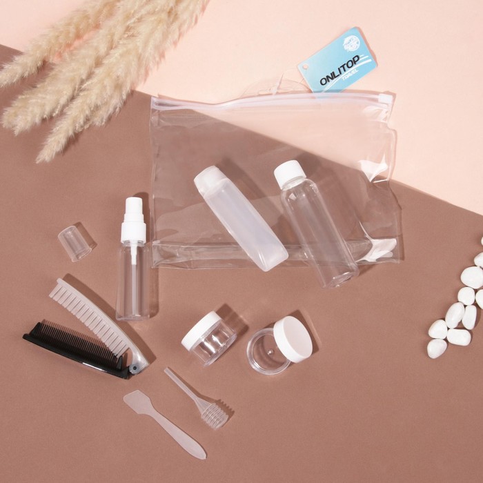 Набор для хранения, в чехле, 8 предметов, цвет розовый/прозрачный
