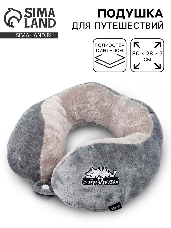 Подушка для путешествий бархатная «Перезагрузка», серая