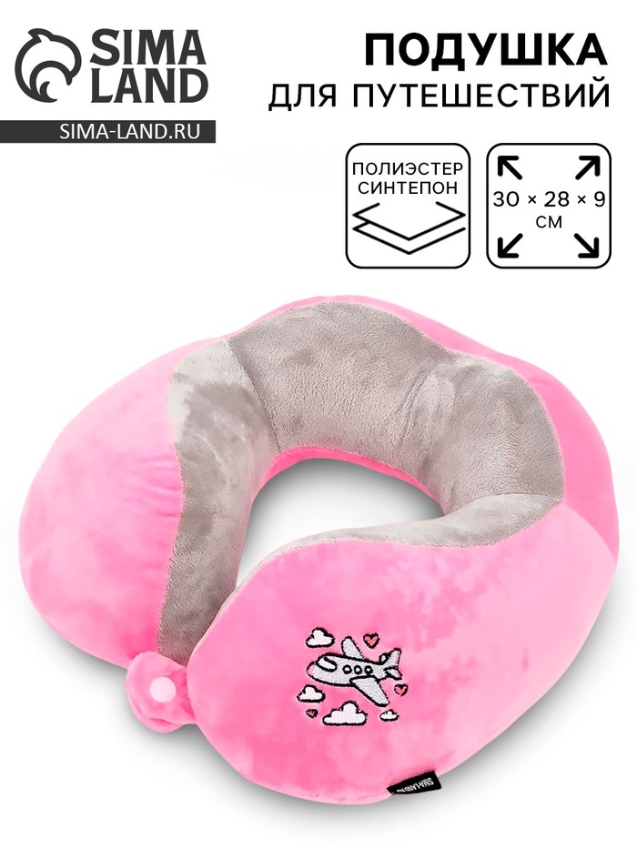 Подушка для путешествий бархатная формовая «Самолёт», розовая