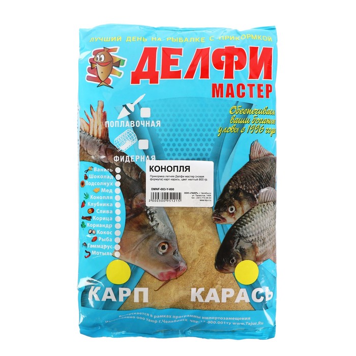 Прикормка DELFI "Мастер", летняя (новая формула), карп-карась, конопля, желтая, 800 г