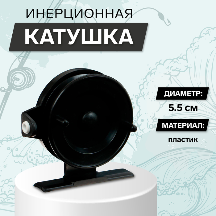 Катушка инерционная, пластик, диаметр 5.5 см, направляющая лески, цвет черный, 602