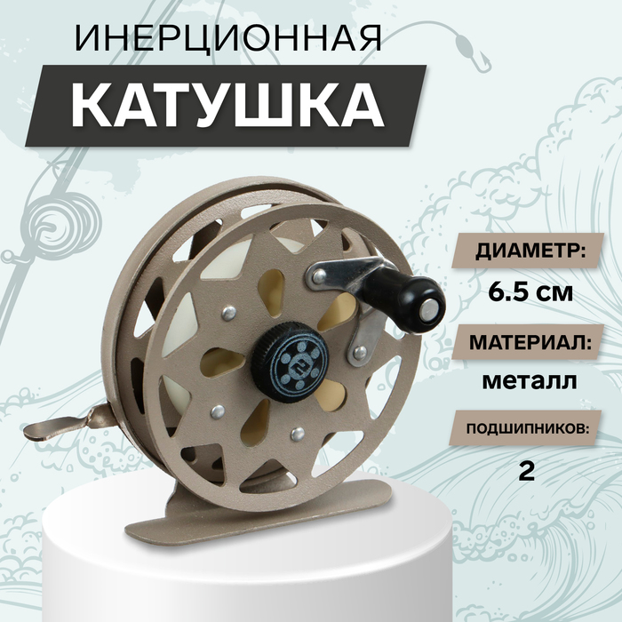 Катушка инерционная, металл, 2 подшипника, диаметр 6.5 см, цвет коричневый, TL65A