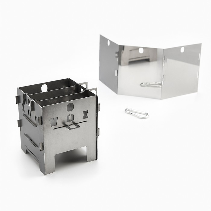 Туристический набор: щепочница, инфракрасное зеркало - 13×11×13 см, карабин 9 см, сталь 1 мм