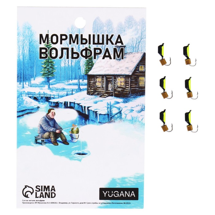 Мормышка Столбик чёрный, лайм брюшко + куб золотой, вес 0.4 г