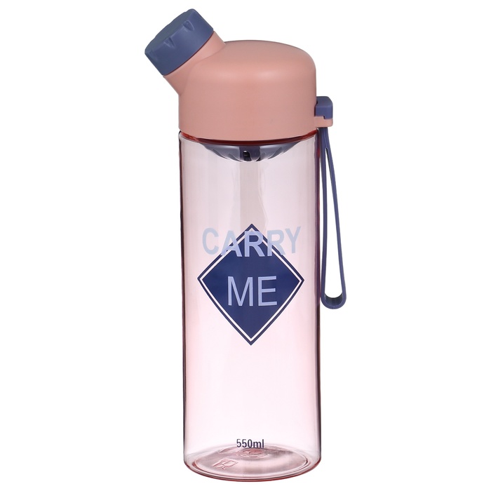 Бутылка для воды, 550 мл, 22.5 х 6.7 см, сито, розовая