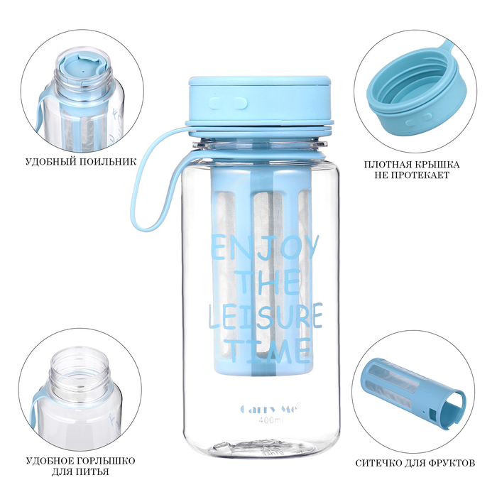Бутылка для воды, 400 мл, с ситечком, 17.5×10.5 см, голубая