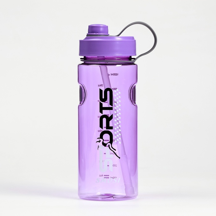 Бутылка для воды спортивная, с трубочкой, фиолетовая, 24.5×8.5 см