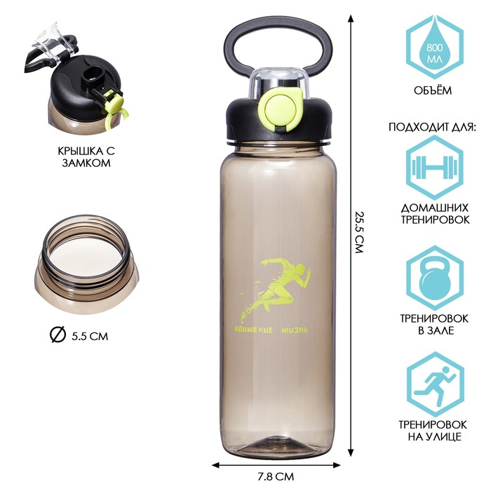 Бутылка для воды, 800 мл, "Движение - жизнь", с поильником, черная