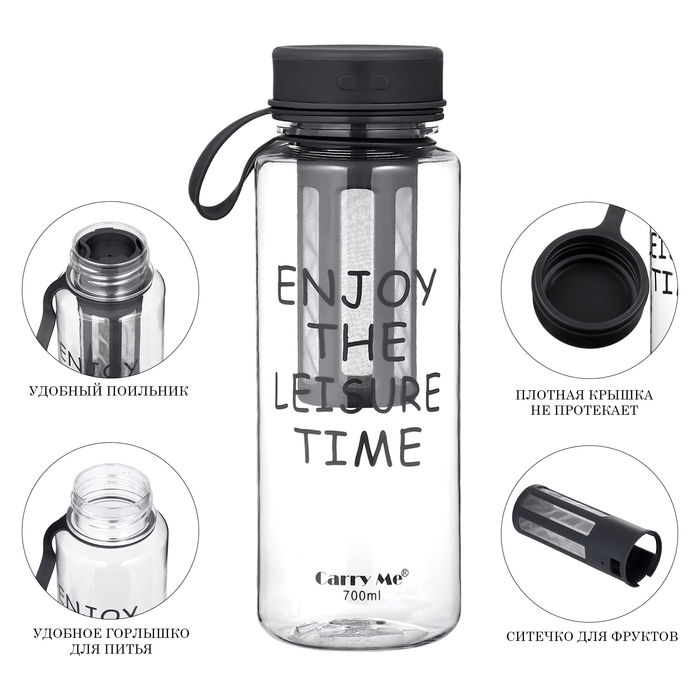 Бутылка для воды, 800 мл, 22 х 10.5 см, с ситом, черная