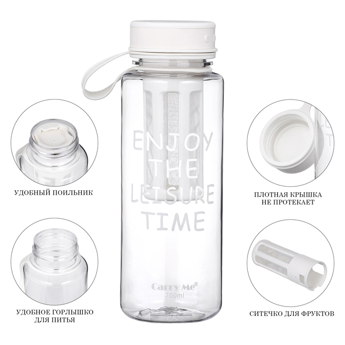 Бутылка для воды, 800 мл, 22 х 10.5 см, с ситом, белая