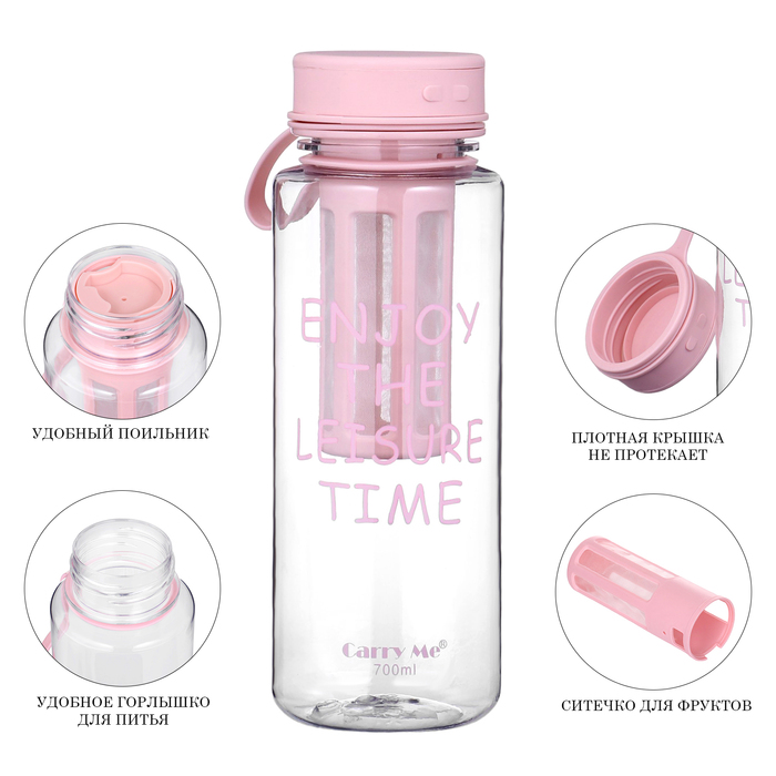 Бутылка для воды, 800 мл, 22 х 10.5 см, с ситом, розовая