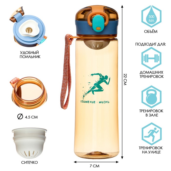 Бутылка для воды, 500 мл, "Движение - жизнь", с поильником