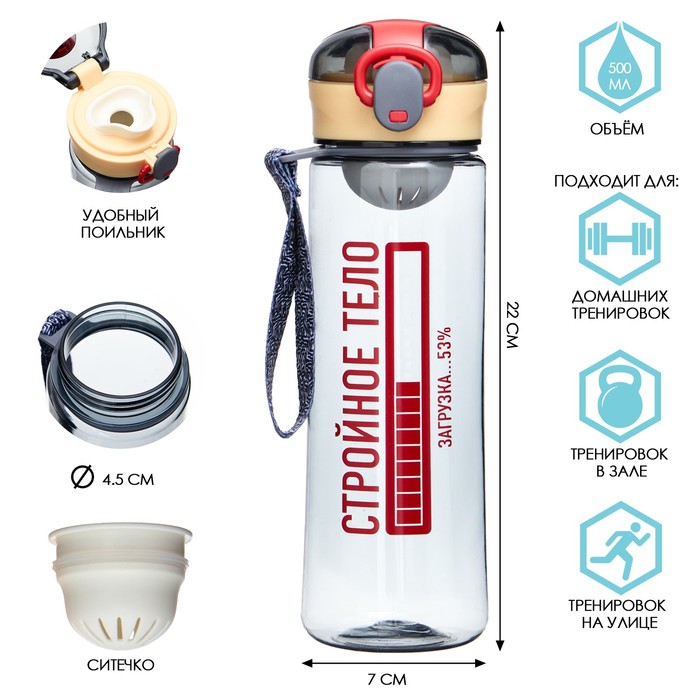 Бутылка для воды, 500 мл, "Стройное тело", с поильником