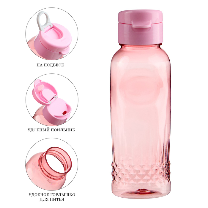 Бутылка для воды спортивная, 650 мл, "Флорес", 4.7 х 22 х 7 см, розовая