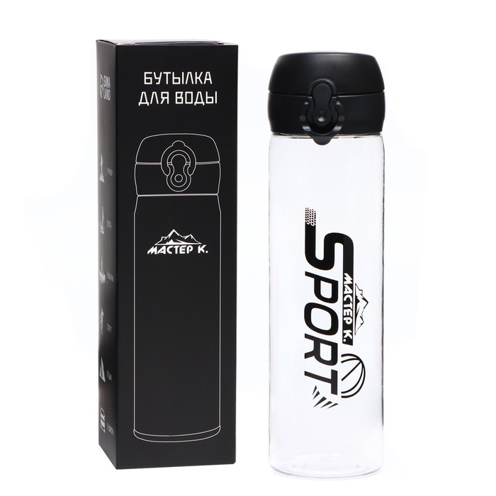 Бутылка для воды спортивная прозрачная, 550 мл, "Мастер К", 22 х 6 см