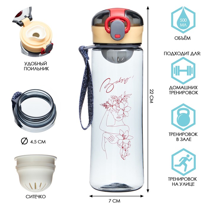 Бутылка для воды, 500 мл, "Стройное тело", с поильником