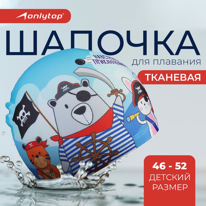 Шапочка для плавания детская ONLYTOP «Пираты», тканевая, обхват 46-52 см