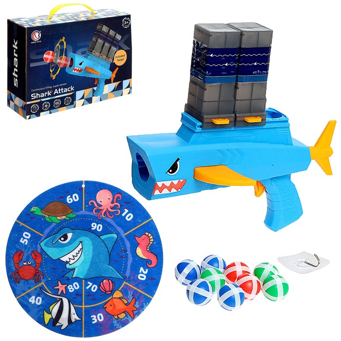 Дартс с пистолетом «Акула», 2 обоймы, 9 шаров